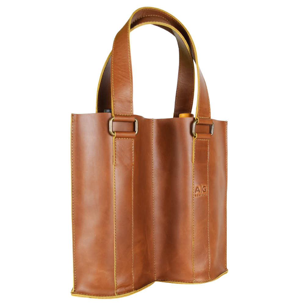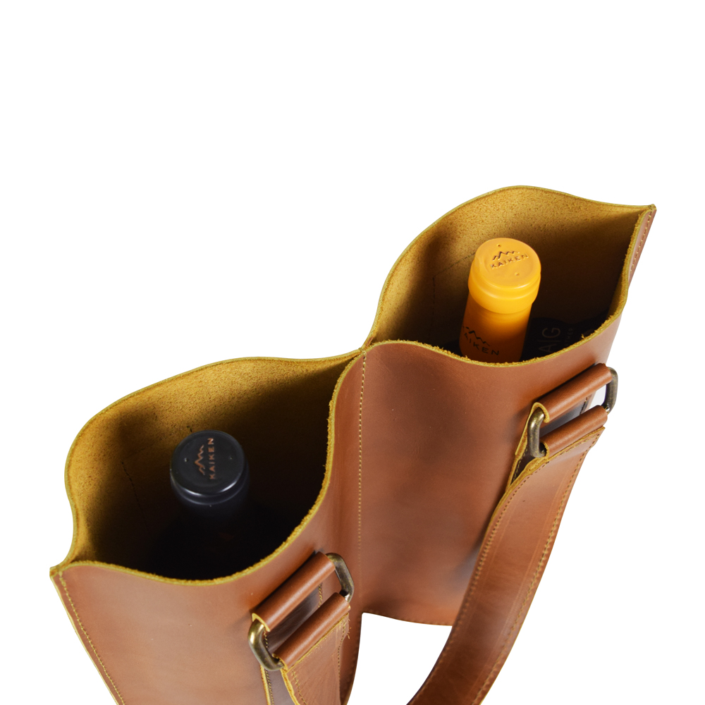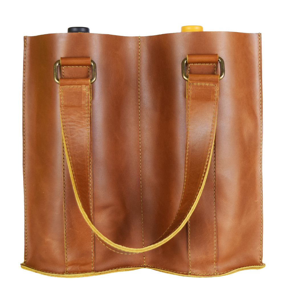 Portabotellas doble – Wine Caddy para transportar cómodo y seguro sus botellas – 100% piel genuina color miel