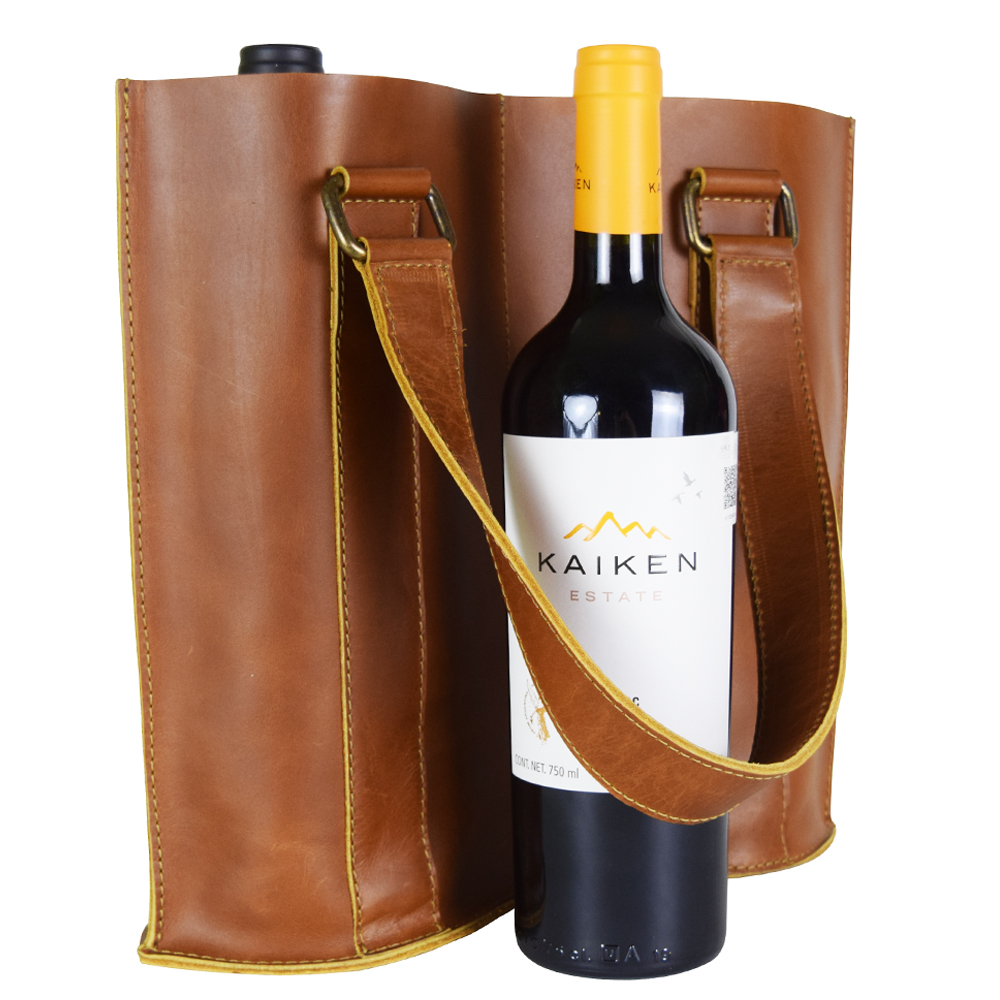 Práctico portabotellas doble 100% piel genuina súper resistente y muy elegante. Transporta tus botellas de vino de forma segura y cómoda. Además es un regalo ideal para tus catas de vino.